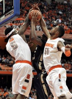 While nobody knows when Syracuse (and Pittsburgh) will be joining the ACC, the Confidential is pleased to note that the Orange are starting to make a larger percentage of their noise on the court these days. As the Bernie Fine issue fades into the background, the Orange moved to 10-0 on the season with an 85-50 win over George Washington. Most importantly, with the win, Syracuse is primed to jump to #1 in the polls Monday.