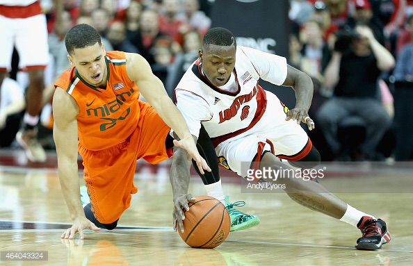After a week when Mother Nature decided to wreak havoc on the residents in the Kentucky area, it only made sense when a group of Hurricanes dropped into downtown Louisville and the Yum Center yesterday afternoon looking to cause major damage. This particular storm came in the shape of a Miami men’s basketball team that sat firmly on the NCAA Tournament bubble entering Saturday’s slugfest. Miami, a team that decidedly beat Duke on their home floor earlier in the season, entered yesterday as a team that was hungry, looking for something to eradicate. And, for 20 minutes Rick Pitino’s squad looked like the ideal victim – ripe for the picking.