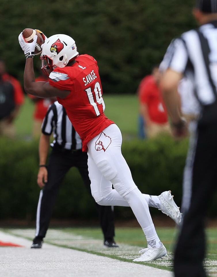 Frankly, I haven’t a clue what’s gonna happen this Thursday when Clemson rolls into The Ville. The only certainties for me will be a few pre game cold beverages in the green lot and me potentially losing my voice by halftime. I am really hoping to see a high level of energy from the players, something that was absent on Saturday. If you can’t get up for a conference home opener against a nationally ranked opponent that you let off the hook last season then you need guidance. I’m hoping to see the Cards pound the running game early and often. As for who plays quarterback…..hell, I don’t care if it’s the Easter Bunny as long as he’s efficient and protects the pigskin. Another thing I am hoping to see is the continued emergence of WR Jaquay Savage (formerly Williams) as he was a man among boys against the Cougars while hauling in passss like this…….